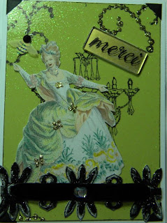 I've learned many new techniques since this I made these cards and have been inspired to pull Marie out of hiding for some new cards. The cards not only feature a Marie Antionette image, but also a BEE image. The bee is the mascot of my women's club and these cards were made as thank you cards.